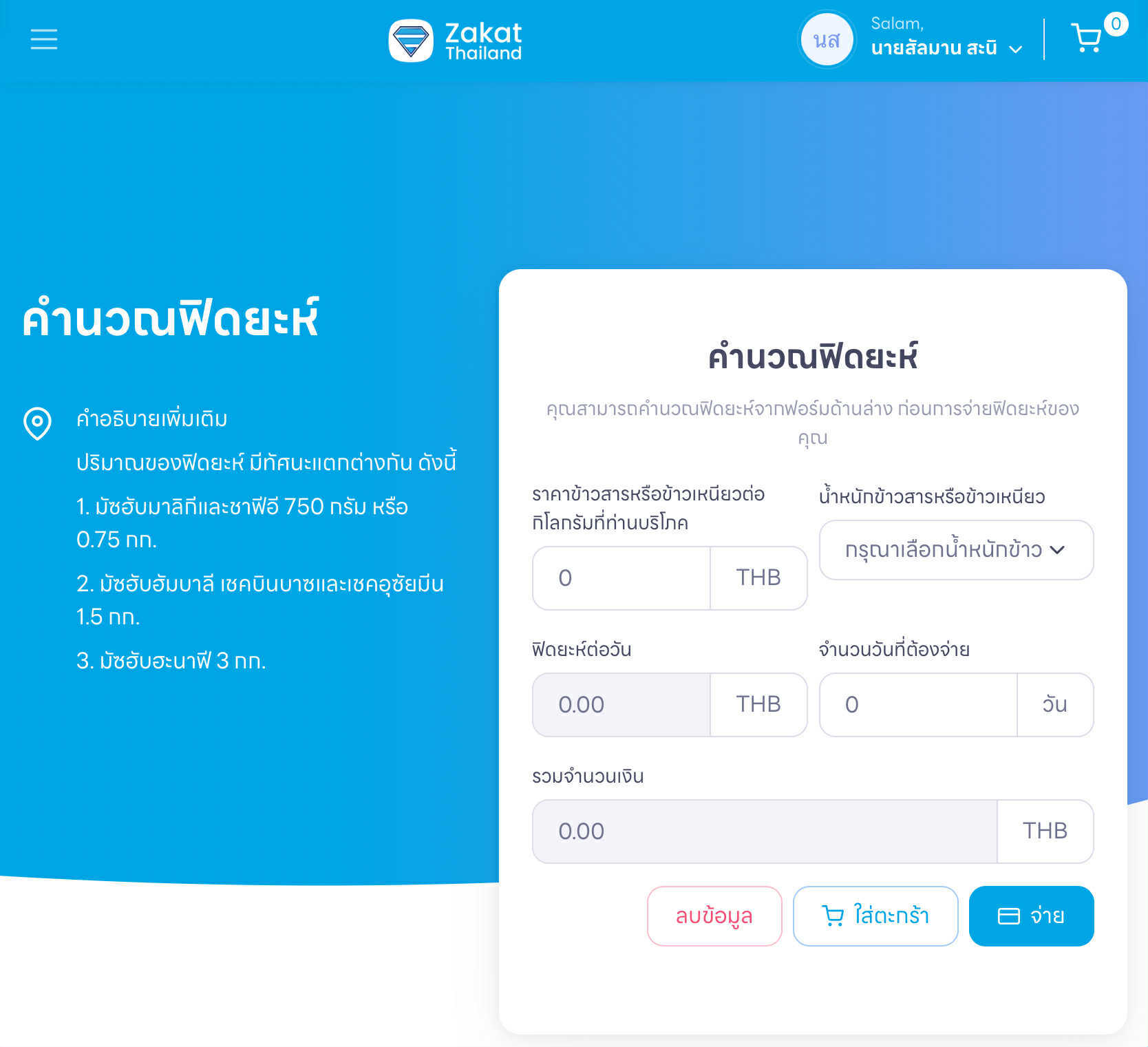 การคำนวณและชำระฟิดยะห์ ผ่าน Zakat Thailand